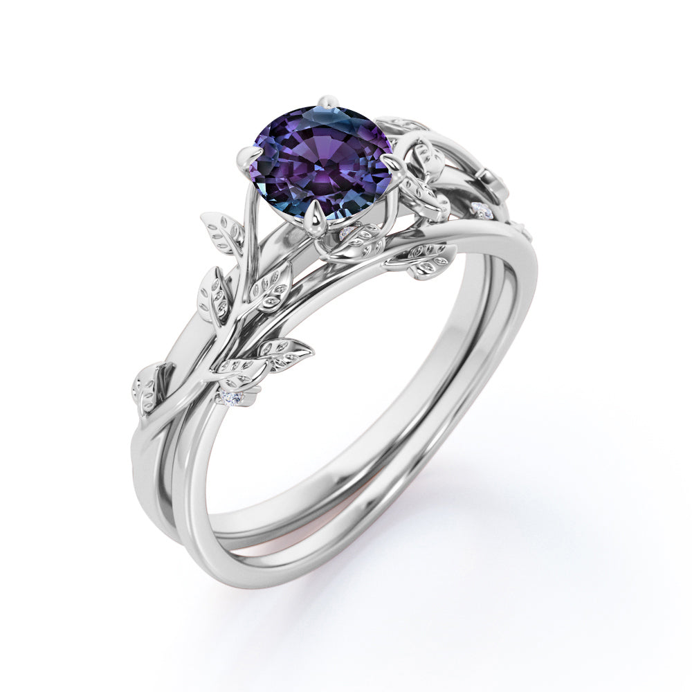 Leaf & Vine 0.50 Ct Round Cut Lab Alexandrite Bridal Set