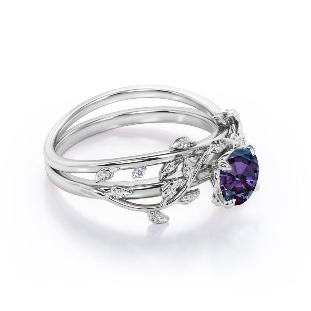 Leaf & Vine 0.50 Ct Round Cut Lab Alexandrite Bridal Set