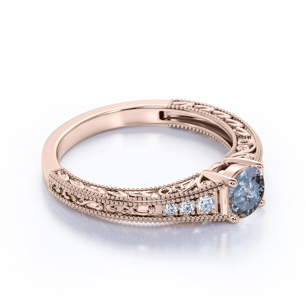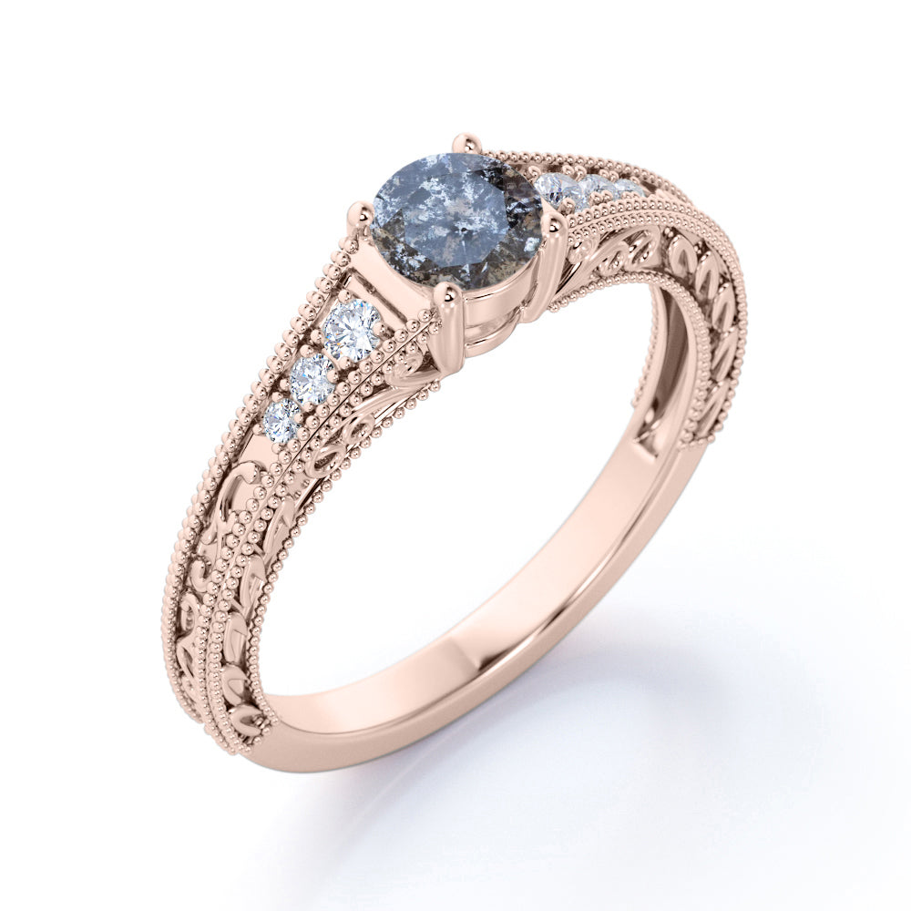 Edwardian 0.60 Ct Round Salt and Pepper Diamond Engagement Ring