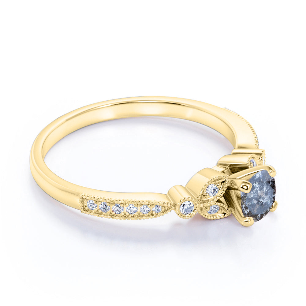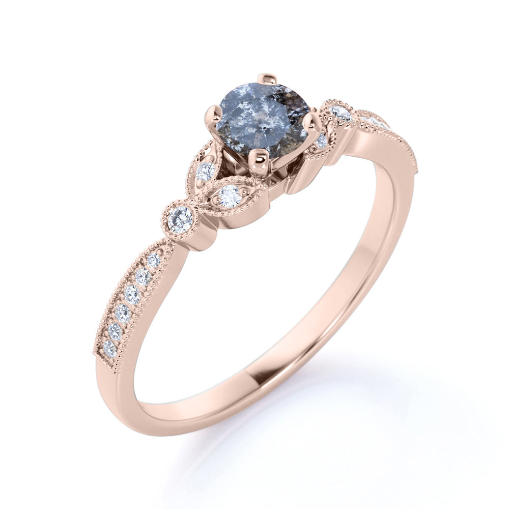 Butterfly 0.65 Ct Round Salt and Pepper Diamond Engagement Ring