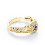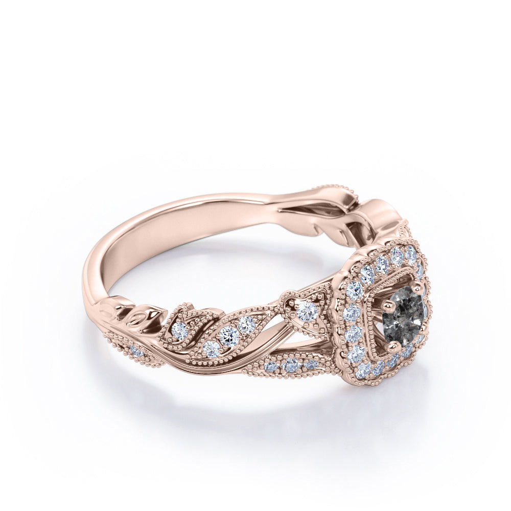 A minimalist and rustic approach, this 0.75 Carat Round Cut Grey Salt and Pepper Diamond Nature Inspired Engagement Ring in White Gold will surely make a perfect alternative engagement ring. Made with real gold and natural salt and pepper diamond, this engagement ring can be your next favorite jewelry. The minimalist salt and pepper diamond engagement ring is perfect in either rose gold, white gold or yellow gold. Crafted in precious Sterling Silver and in 10k, 14k or 18k Gold and can be customized to Rose Gold, White Gold or Yellow Gold, this bohemian inspired salt and pepper diamond engagement ring is carefully handmade by our passionate jewelry experts. This salt and pepper diamond engagement ring in gold is very trendy and fashionable. It features .50 carat natural round cut salt and pepper diamond enhanced with .25 carat real white sparking diamonds for a total weight of .75 carat. Also, as your satisfaction is our most priority, we will do our best to have your handmade jewelry be carefully and beautifully crafted by our expert jewelers. The order also comes with a 30-day full refund policy.