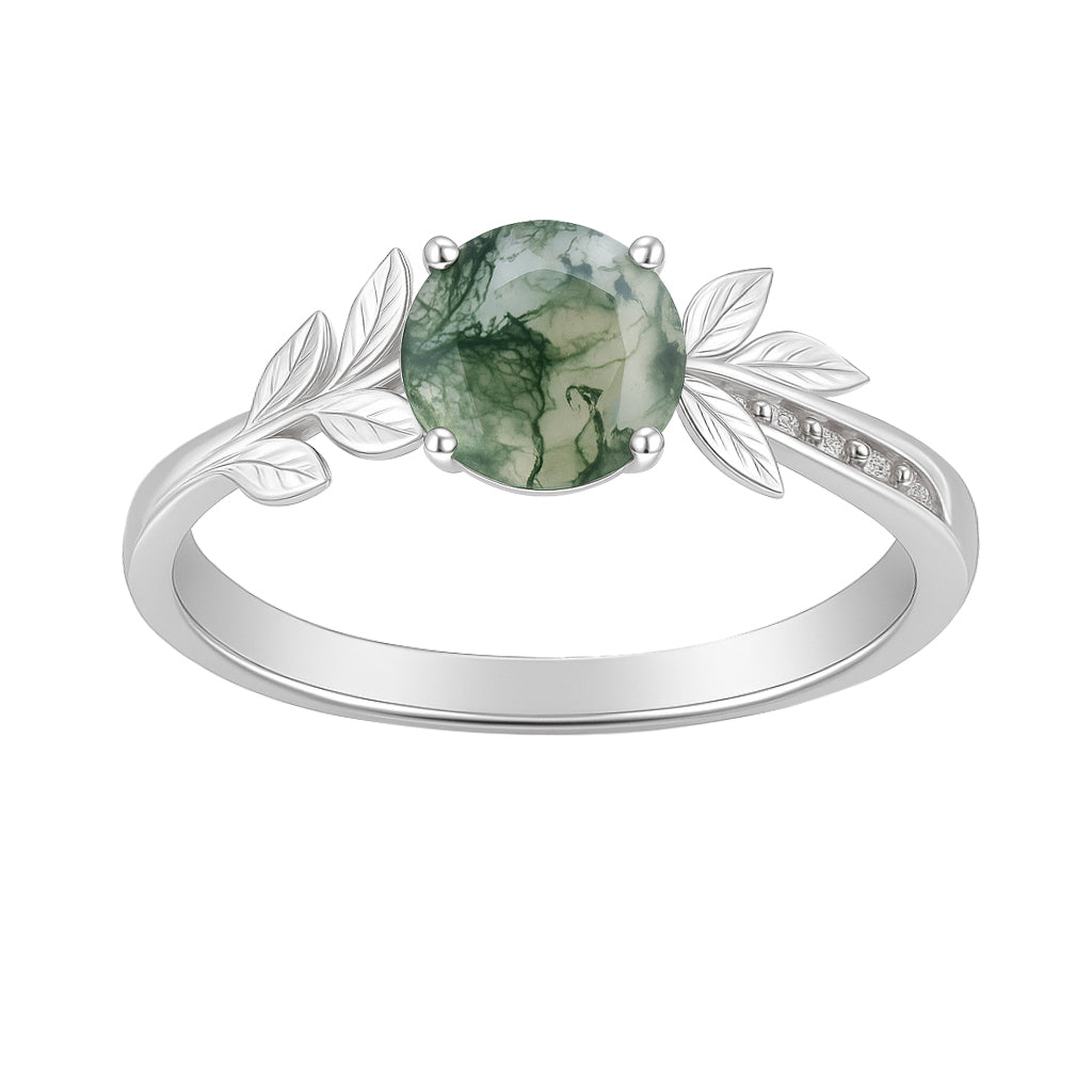 1.05 Ct Round Green Moss Agate Leaf Engagement Ring