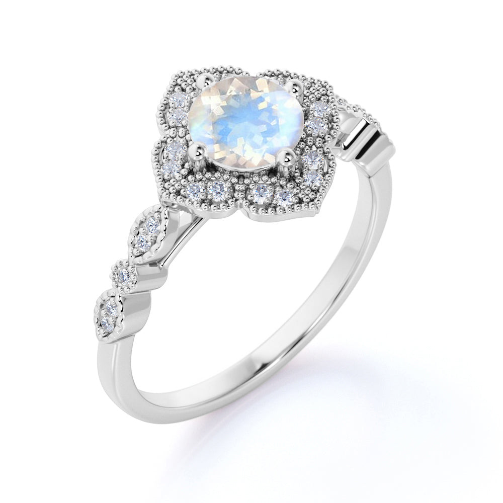 Flower 1.1 ct Round Moonstone Engagement Ring