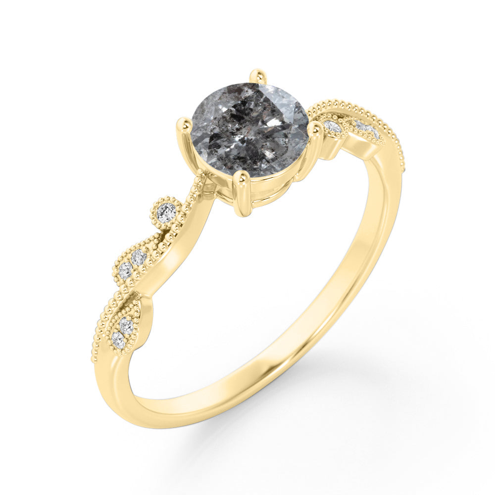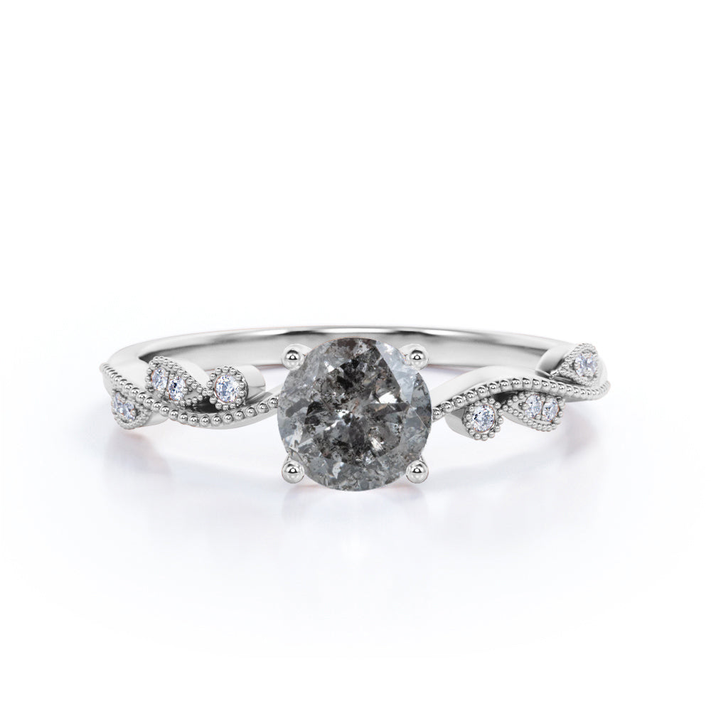 Art Deco 0.60 Ct Round Salt and Pepper Diamond Engagement Ring