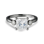 1.10 Ct Princess Moissanite Bezel Side Stone Engagement Ring