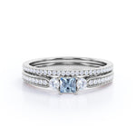 1.15 Carat Princess Cut Aquamarine And Diamond Channel Wedding Ring Set In White Gold