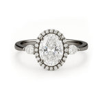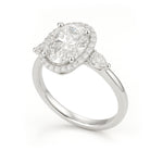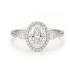 1.15 Ct Oval Moissanite Halo Three-Stone Engagement Ring