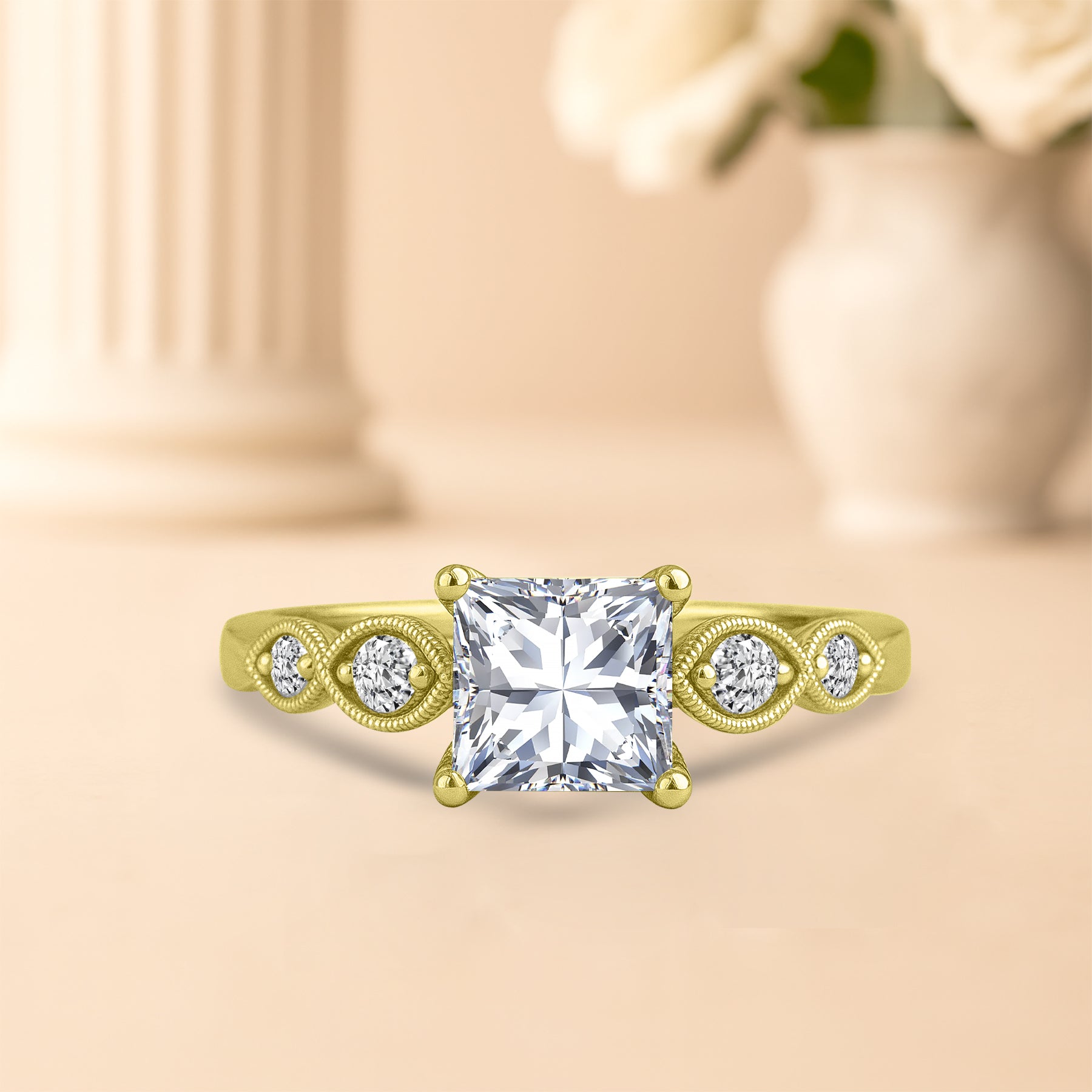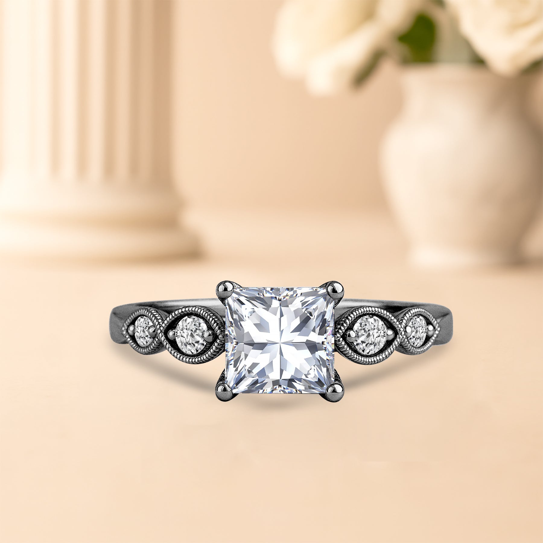1.15 Ct Princess Moissanite Vintage-Inspired Engagement Ring