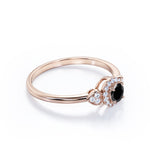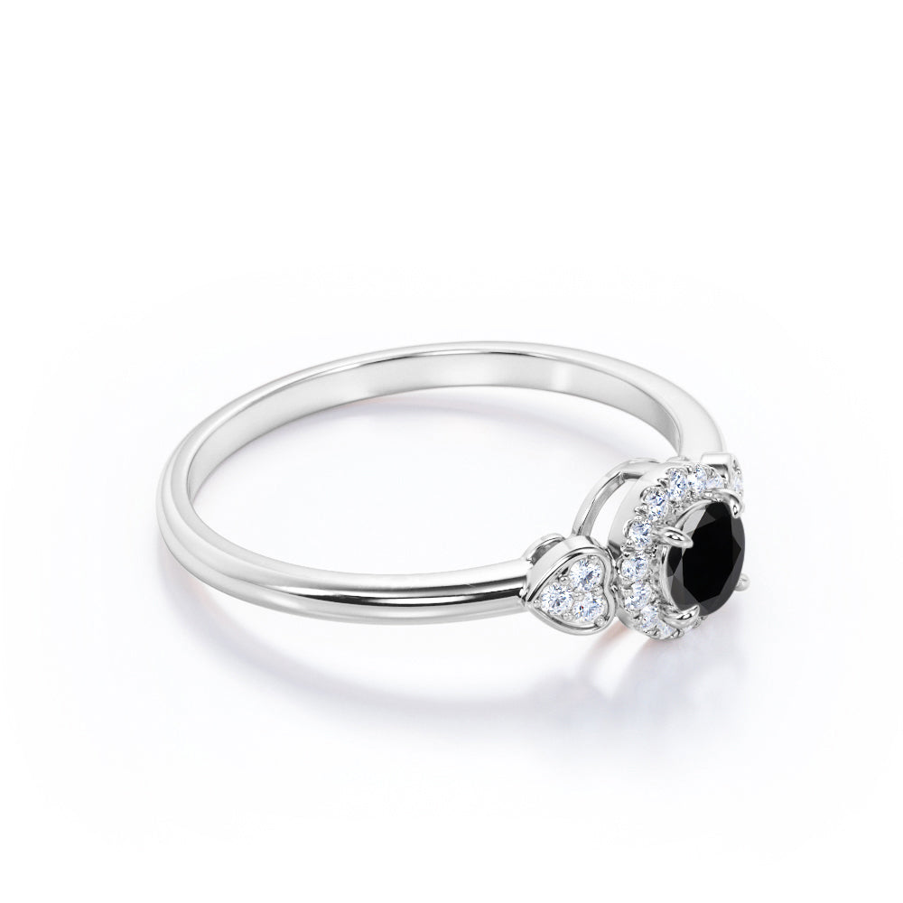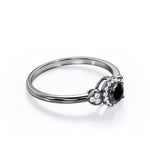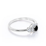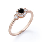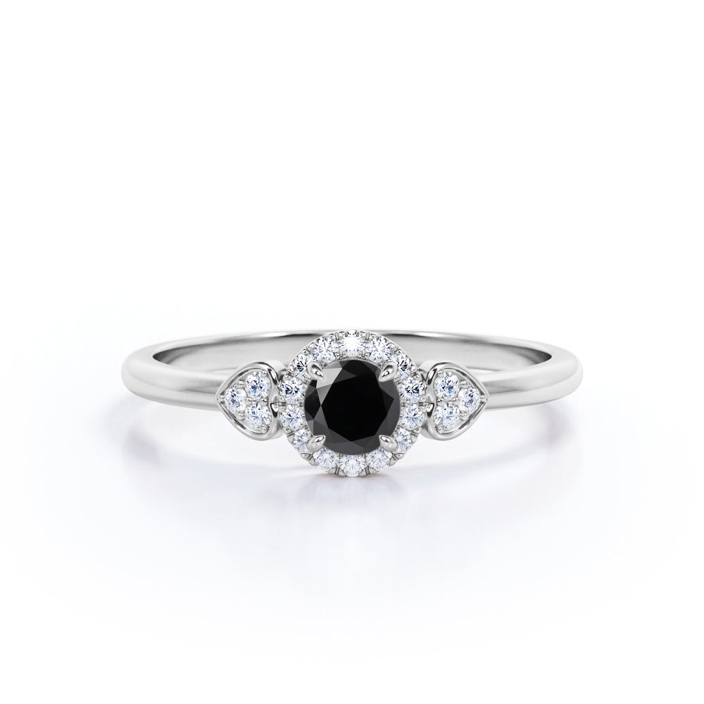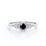 1.2 carat round cut Lab Grown Black Diamond halo engagement ring in white gold. Surprise your partner with our splendid Lab Grown Black Diamond engagement ring. This round cut Lab Grown Black Diamond weighs 1 carat and is surrounded by 0.20 carat of glistening diamonds which radiates immense sparkle. This halo engagement ring is charming enough to make her feel loved and happy enough. This four prong set ring will do the justice to any of her ensemble. This unique ring is handmade with love by our craftsmen to please your eyes and beautify her finger. This 1.2 carat round cut Lab Grown Black Diamond halo engagement ring in white gold can also be customized to 10k Gold, 14k Gold depending upon your choice.