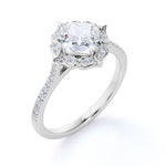 1.25 Carat Cushion Cut Moissanite Floral Engagement Ring