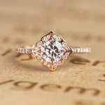 1.25 Carat antique flower design Cushion cut Moissanite and Diamond Engagement Ring in 10k Rose Gold. The ring is made with real Moissanite, real white diamonds, and on real solid 10k Gold. The order comes with Jewelry Certificate, limited Warranty and 30 Days Full Refund policy. Although each ring is handmade and customized to your specifications, but we guarantee a VERY FAST DELIVERY.