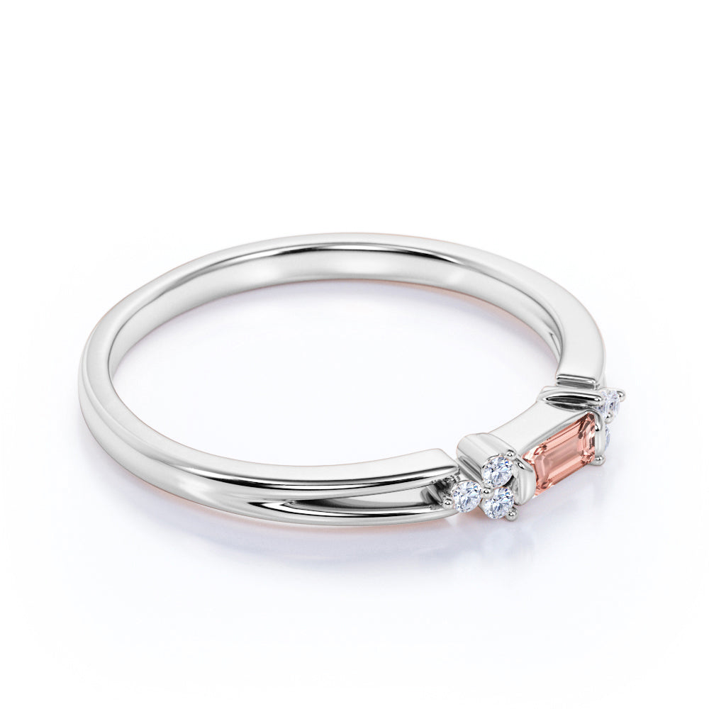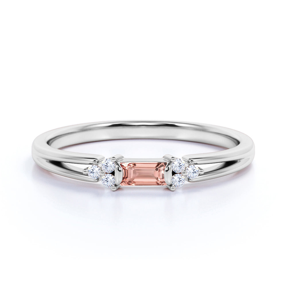 1.25 Carat Baguette Cut East West Setting Morganite and Diamond Engagement Ring in 10k Rose Gold for Women