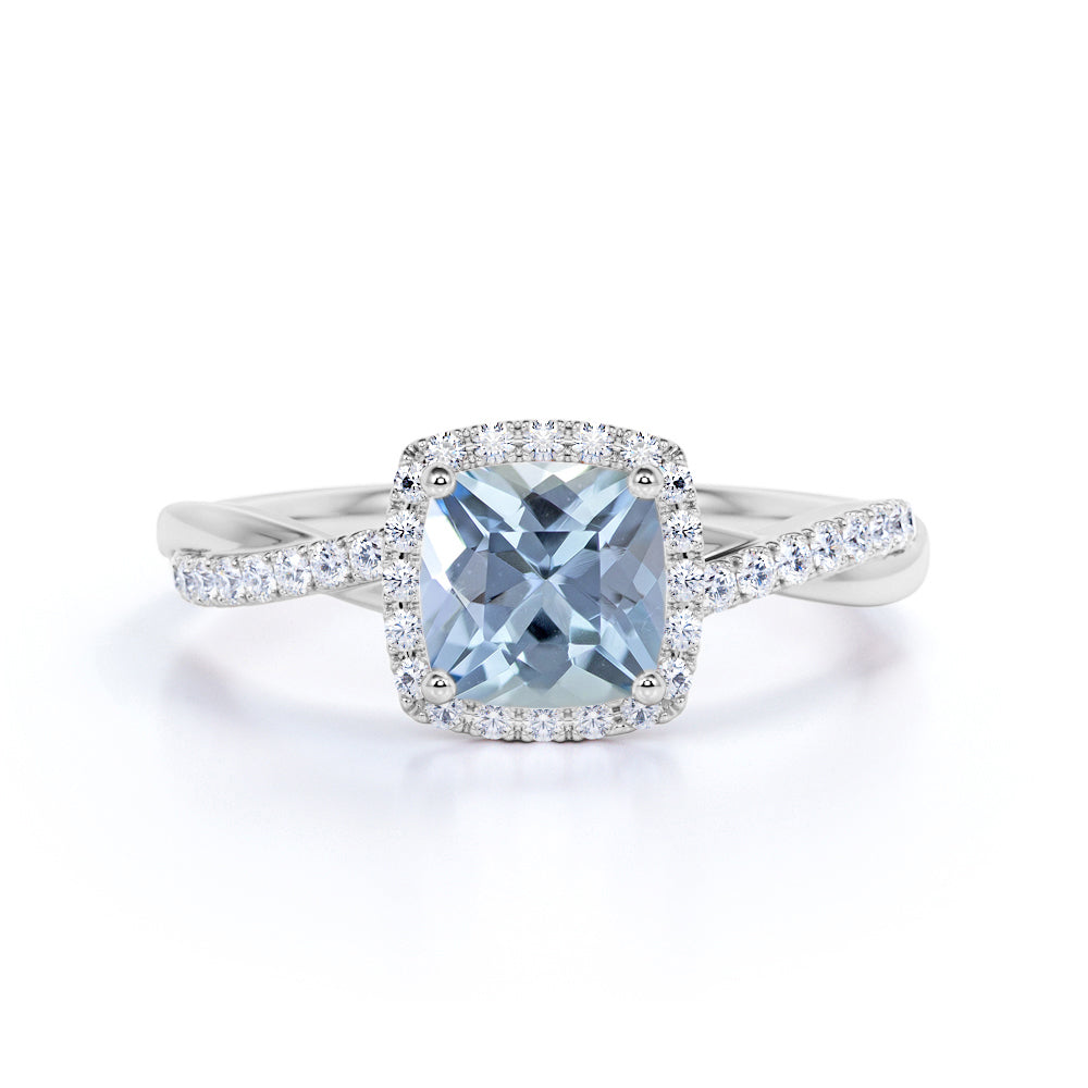1.25 ct Cushion Aquamarine Infinity Halo Engagement Ring