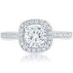 1.25 Carat Cushion cut Moissanite Solitaire Engagement Ring in 10k White Gold