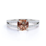 1.25 Carat Cushion Cut Peach Morganite and Diamond Engagement Ring in 10k Rose Gold Art Deco Ring