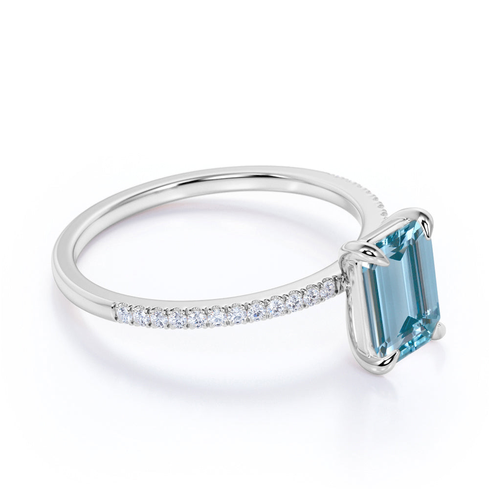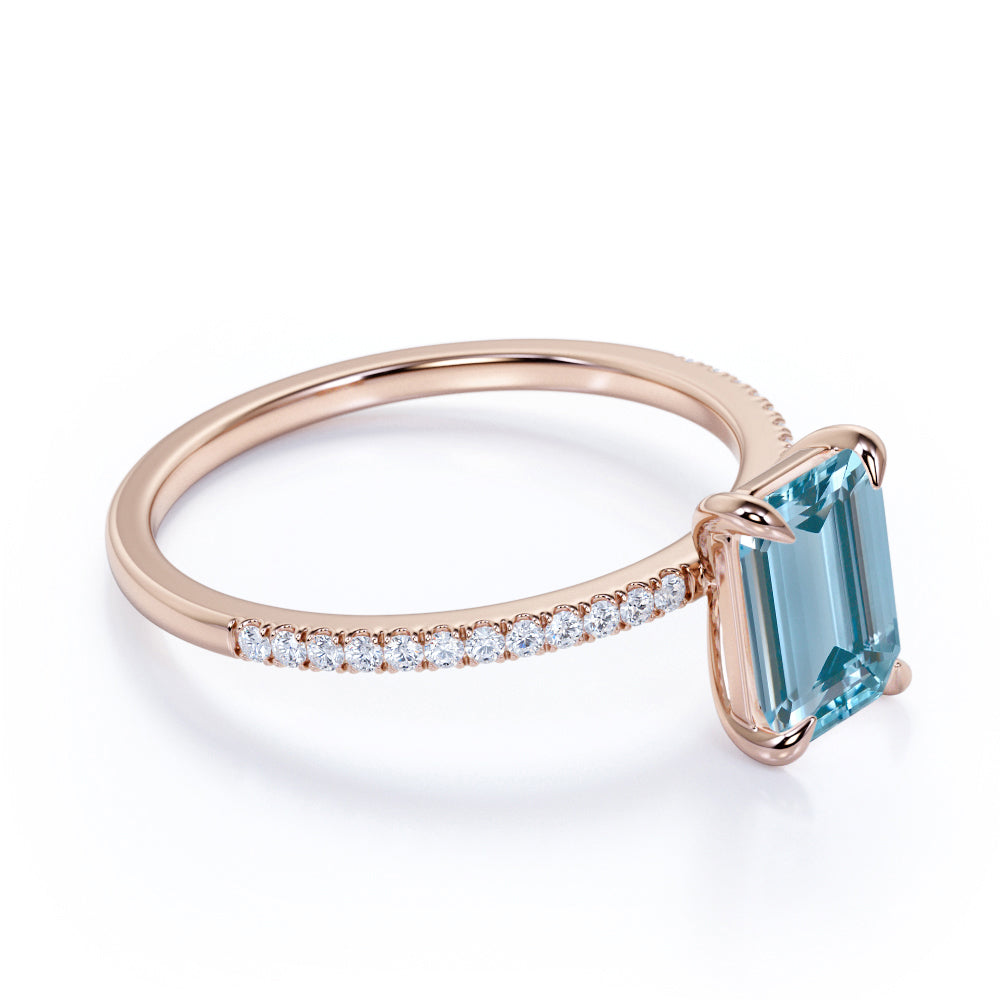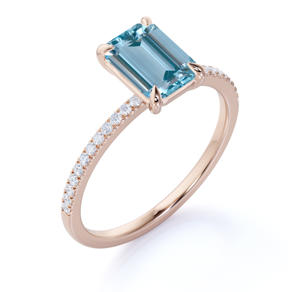 1.25 ct Emerald Aquamarine Pave Engagement Ring