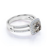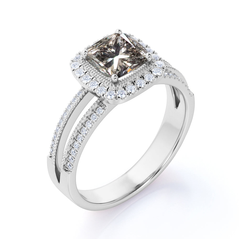 Halo 1.25 Ct Princess Salt and Pepper Diamond Engagement Ring