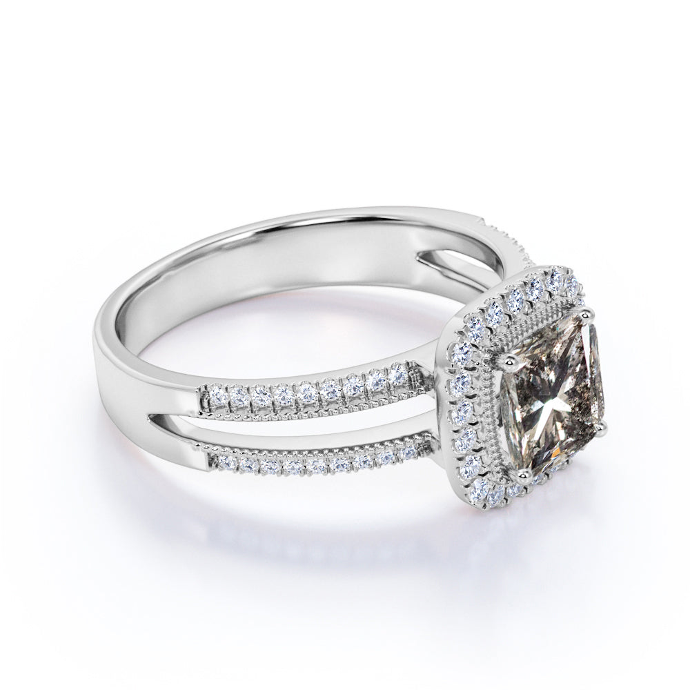 Amazed your loved one with the brilliance of this 1.25 Carat Halo Real Salt And Pepper Diamond Engagement Ring with Pave and Split Band in White Gold. Expertly handcrafted into a fine princess cut by our master jewelers, this supreme salt and pepper ring is made up of 0.5 carat salt and pepper diamond with 0.75 side diamond on solid white gold. Classy and elegant, this salt and pepper ring is well-suited for people who enjoy the glow of gemstones. With its enigmatic sparkles, this salt and pepper engagement ring will surely attract jealous looks. This salt and pepper engagement ring is an amazing gift that will not break the bank. For those who are looking for a gift that will surely be appreciated, this salt and pepper engagement ring can be a good choice for any special occasion, i.e. a birthday ring, an engagement or marriage proposal ring, a Valentines' Day ring, etc. Also, this salt and pepper ring can be customized to your own choice of metal colors: 18K rose gold plating over silver, 18K white gold plating over silver, 18K yellow gold plating over silver, or 18K black gold plating over silver. Give her a surprise of a lifetime with this salt and pepper ring and prepare for a loving kiss.