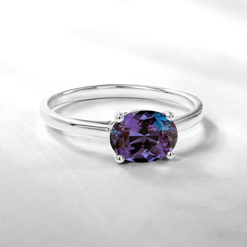 1.25 Carat Oval Cut Alexandrite SWAROVSKI - June Birthstone Solitaire Engagement Ring in 18k White Gold Over Silver