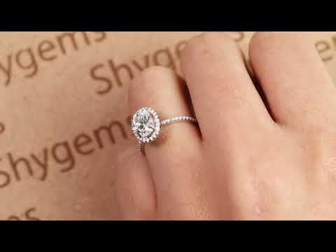 1.25 Carat oval cut Moissanite Halo Engagement Ring in 18k White Gold Over Silver.The ring is made with real and high quality Moissanites that can be a perfect alternative to diamond rings as moissanites have almost the same durability and quality as with diamonds that will last for a lifetime. The order comes with 30 Days Full Refund policy. The moissanite engagement ring is perfect gift for anniversary, birthday, mothers day, or any other special occasion to celebrate.