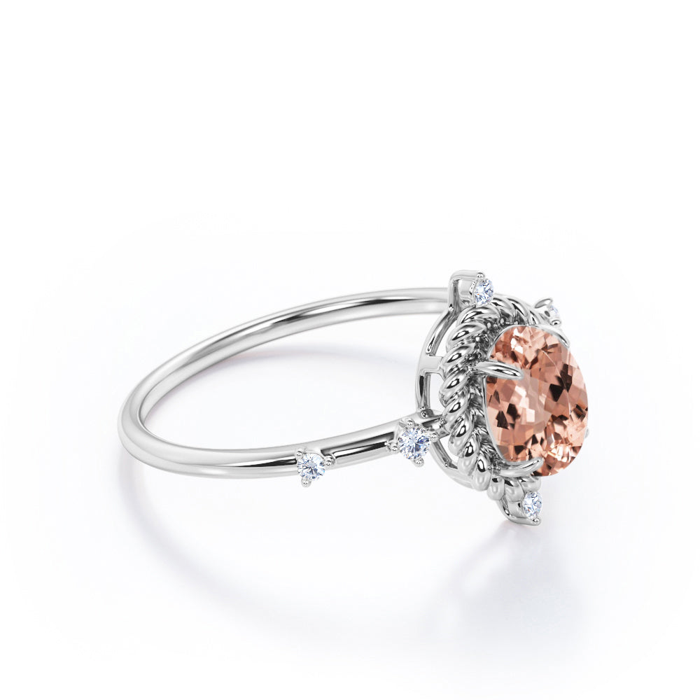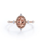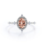 1.25 Carat Oval Cut Peach Morganite and Diamond Engagement Ring in 10k White Gold Handmade Ring