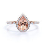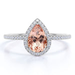 1.25 ct Pear Peach Pink Morganite Halo Engagement Ring
