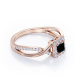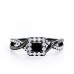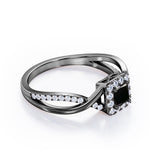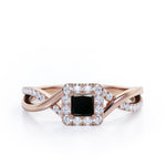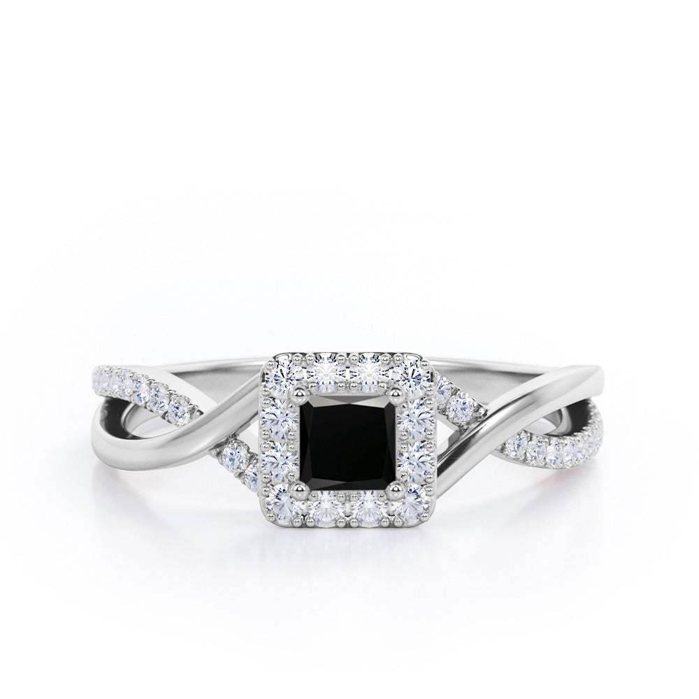With this 1.25 Carat Princess Cut Black Diamond - Half Crossover Pave - Halo Engagement Ring in White Gold, you can make your proposal day unforgettable. Handcrafted with care into a wonderful princess cut by our lapidary expertise, this affordable engagement ring for women combines a a 1 carat princess cut Black Diamond stone in the center with 0.25 carat sparkling diamond side stones for a total carat weight of 1.25 carat. For those looking for something a little out of the ordinary, this Black Diamond ring for women is ideal for those who wish to express their charisma and uniqueness. With its dazzling beauty, this real Black Diamond ring is magnificent with its glory and brilliance and will be an unmistakable addition to any jewelry collection. This gold Black Diamond band ring is stunning and inexpensive, thanks to its reasonable price. This real Black Diamond wedding ring is regarded as a symbol of your undying devotion to your partner. This cheap wedding ring can be customized to your own choice of metal colors: white gold, rose gold, black gold, or yellow gold. Your love story will be complete with this Black Diamond engagement ring.