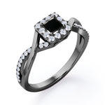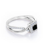 1.25 Carat Princess Cut Black Diamond - Half Crossover Pave - Halo Engagement Ring in White Gold