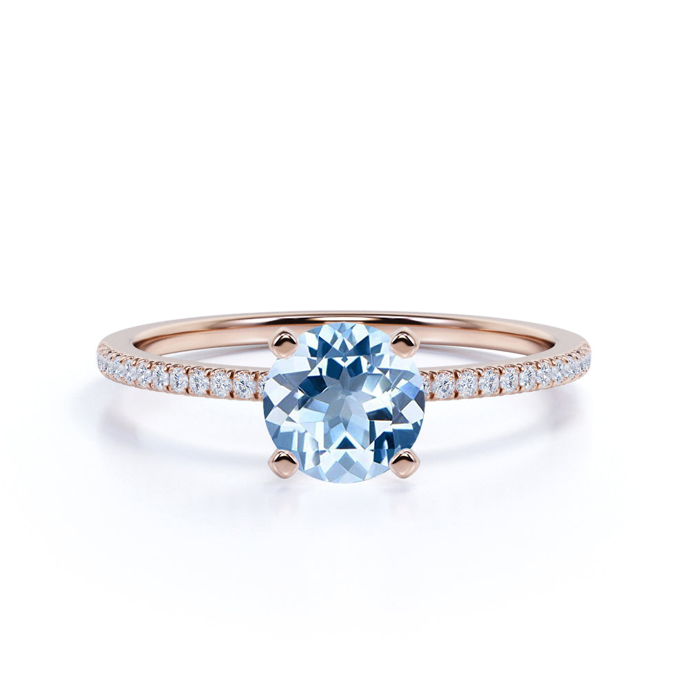 Vintage Style 1.25 Carat Round cut Aquamarine and diamond Engagement Ring in White Gold. Fascinating sparkling aquamarine engagement ring highlights total 1.25 carats perfect real blue aquamarine and glittering diamonds and is made in solid 10k White Gold. Handmade by our skilled artisan jeweler, this piece is truly one of a kind.And as always, the order comes with our 30 DAYS FULL REFUND policy, GUARANTEED DELIVERY withing 5 Days, and in a BEAUTIFUL Jewelry Ring Box.