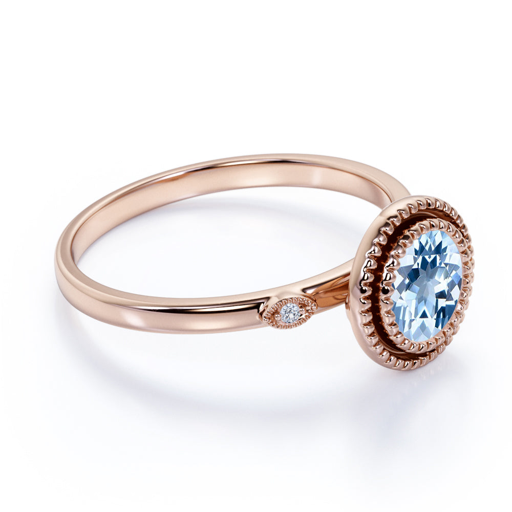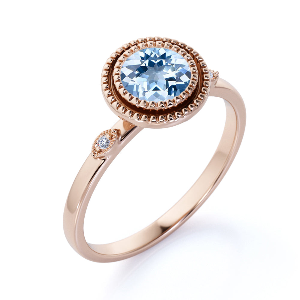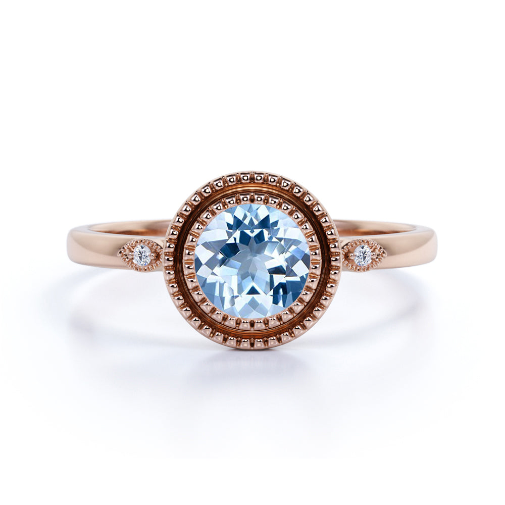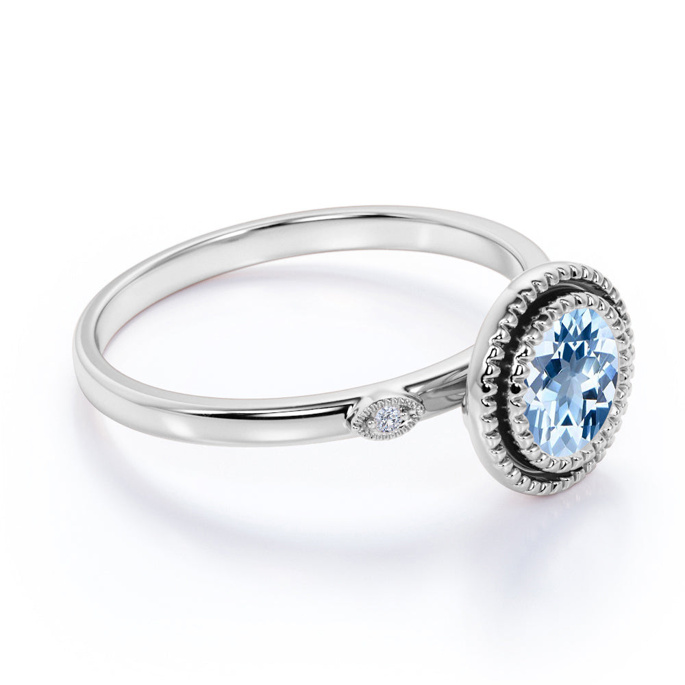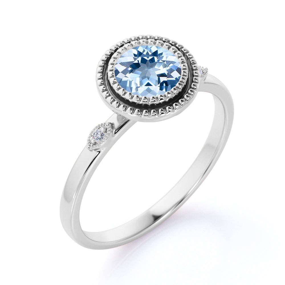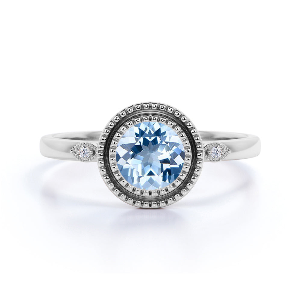 1.25 Carat Round cut Aquamarine and diamond Engagement Ring in White Gold