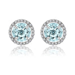 Introducing the 1.25 Carat Round Cut Aquamarine March Birthstone Halo Stud Earrings in 18K White Gold over Silver. These exquisite earrings feature brilliant round cut cubic zirconia stones, meticulously designed to replicate the hue of Aquamarine, the cherished March birthstone. Set in a luxurious 18K white gold over silver, these stud earrings exude elegance and sophistication, perfect for any occasion. The birthstone earrings make a thoughtful and meaningful gift for March birthdays, symbolizing love, protection, and passion. The combination of dazzling cubic zirconia and radiant white gold over silver ensures a timeless appeal and unmatched durability. Ideal for those who appreciate high-quality, affordable luxury, these earrings are a must-have addition to any jewelry collection.|Total Carat Weight (All Stones): 1.25 Carat|Gemstone Type: Cubic Zirconia|Gemstone Shape: Round Cut|Earrings Type: Stud Earrings|Metal Type: 18K White Gold Plating Over Silver|Birthstone Month: March|Condition: New