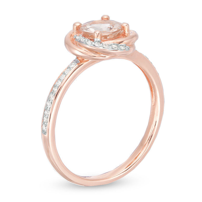 1.25 carat round cut morganite and moissanite flower design engagement ring on 18k rose gold over silver. Handmade and customized to your requirement, the beautiful engagement ring celebrates true love at very affordable price. The beautiful and classic morganite engagement ring for women is sure to please her at very first sight. The bridal wedding ring is crafted in 18k Gold over Silver and made with real and high quality Moissanites that can be a perfect alternative to diamond rings as moissanites have almost the same durability and quality as with diamonds that will last for a lifetime.
