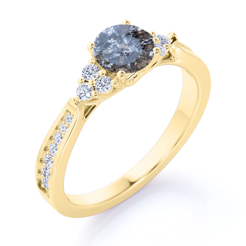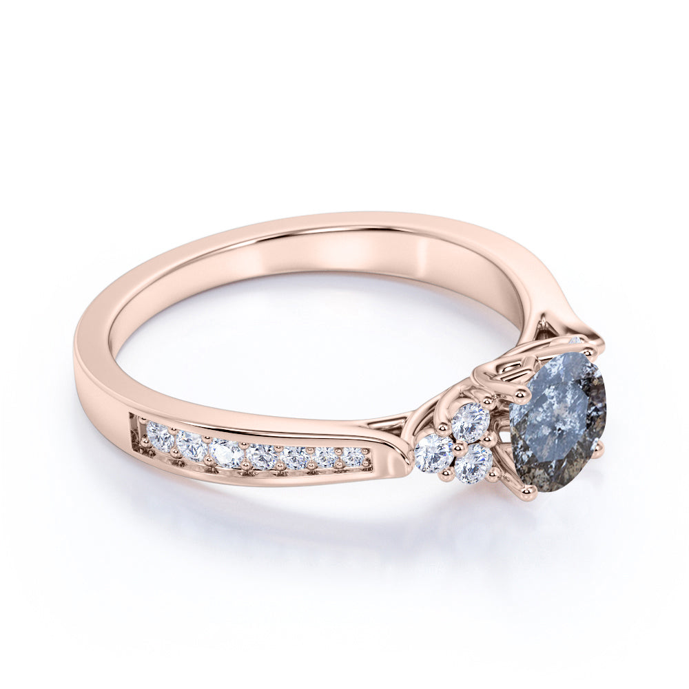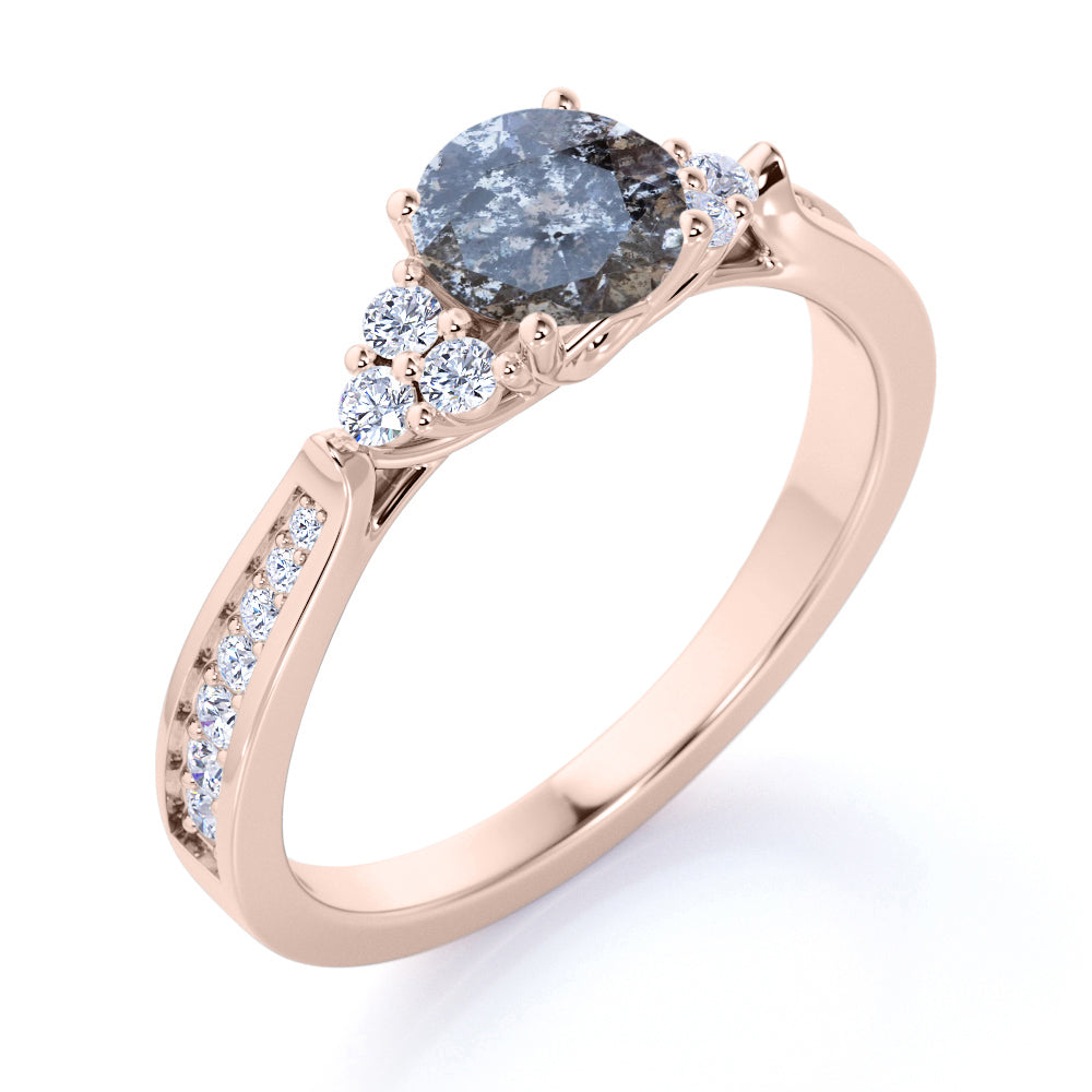 0.75 Ct Round Salt and Pepper Diamond Engagement Ring
