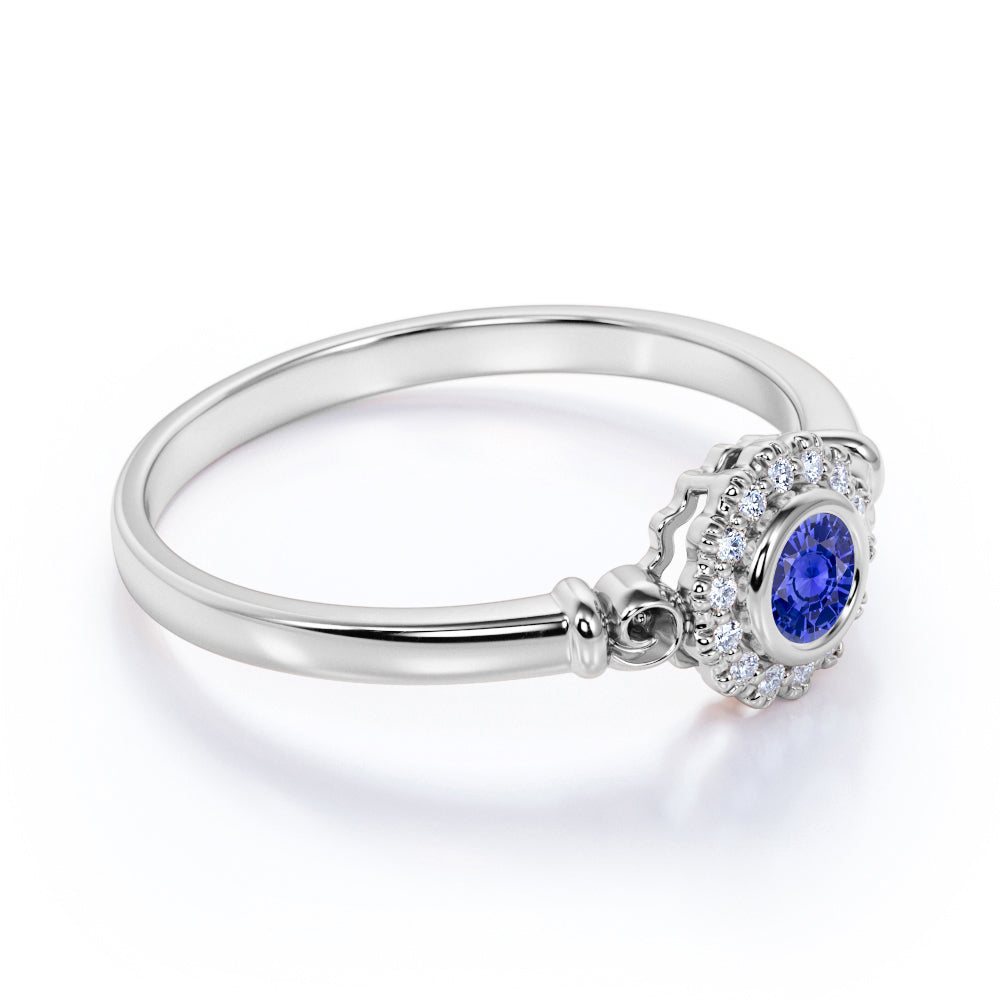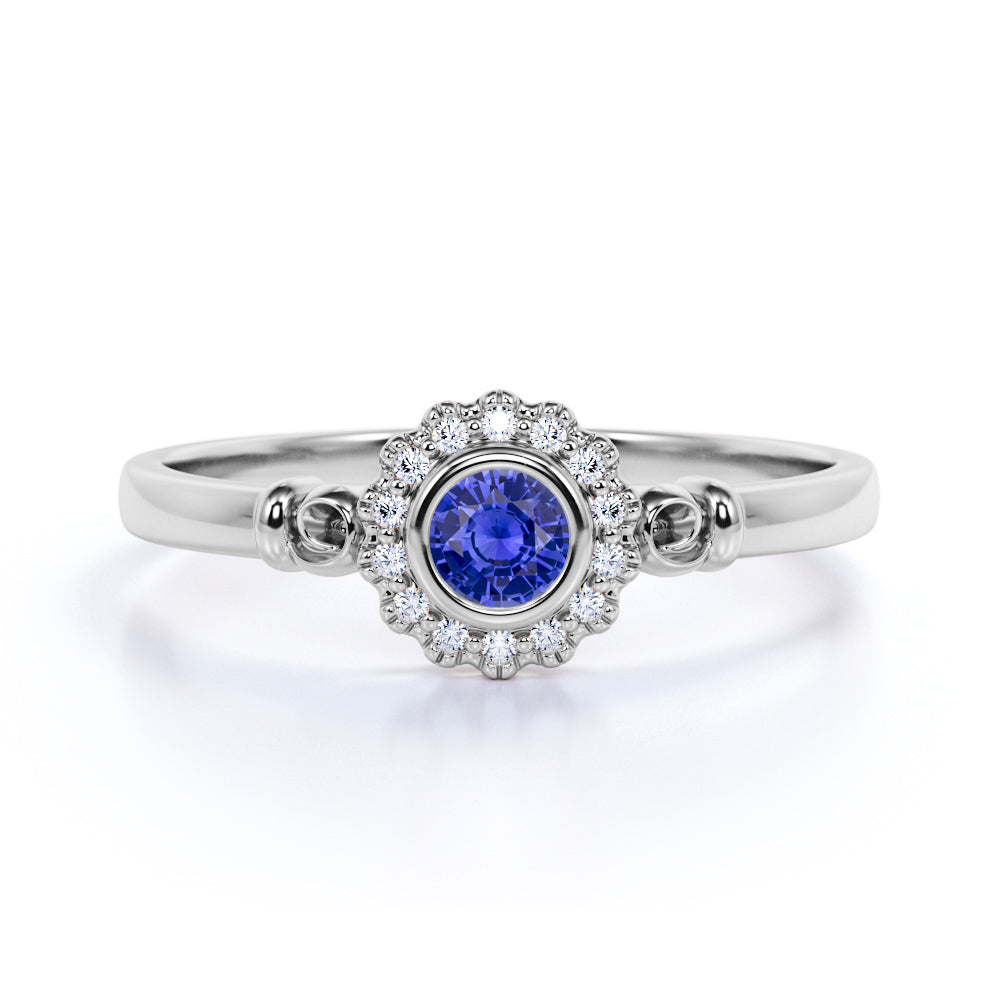 1.25 Carat Round cut Sapphire and Diamond Halo Engagement Ring in White Gold
