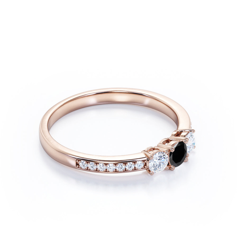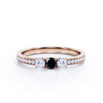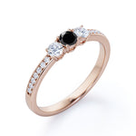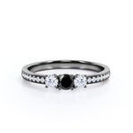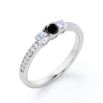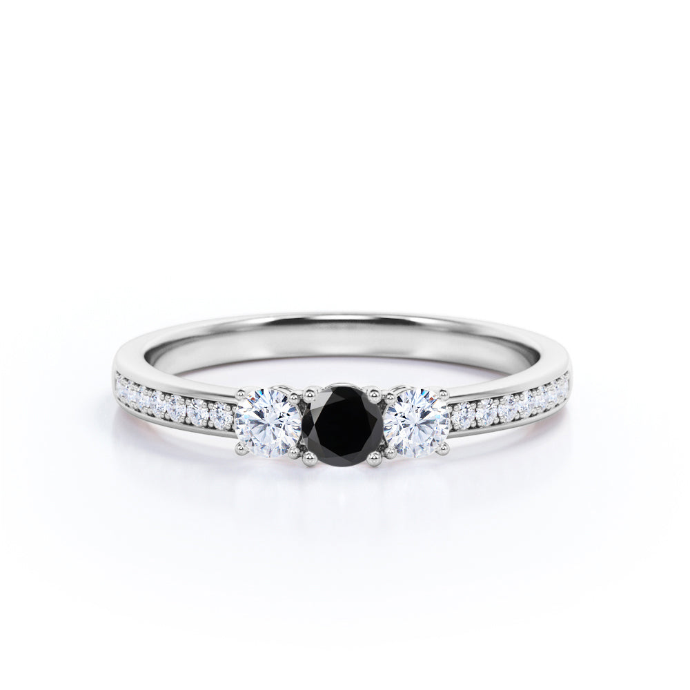 1.3 carat round cut Lab Grown Black Diamond three stone engagement ring in white gold. Presenting an exquisite ring that will show her you love her and will undeniably command attention. This three stone Lab Grown Black Diamond engagement ring will look extremely gorgeous on her finger. The round cut Lab Grown Black Diamond at the center weighs 1 carat and the side diamonds weighs 0.30 carat which makes total of 1.3 carat. This fetching Lab Grown Black Diamond engagement ring surrounded by channel set sizzling Lab Grown Black Diamonds will make your significant other do a double-take, winning her heart and ensuring the answer you desire. This three stone Lab Grown Black Diamond engagement ring in white gold can also be customized to 10k Gold, 14k Gold .