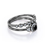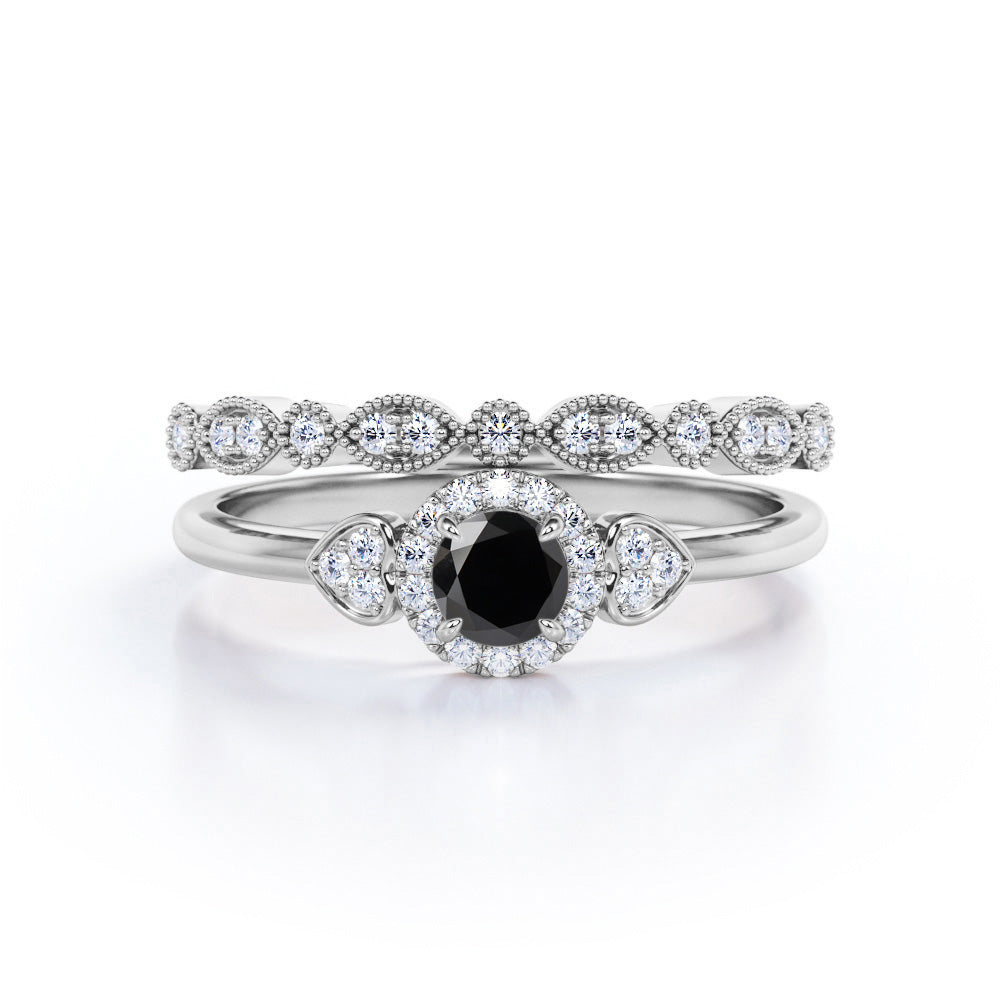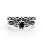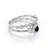 1.35 Carat Round Cut Lab Grown Black Diamond Halo Wedding Ring Set In White Gold