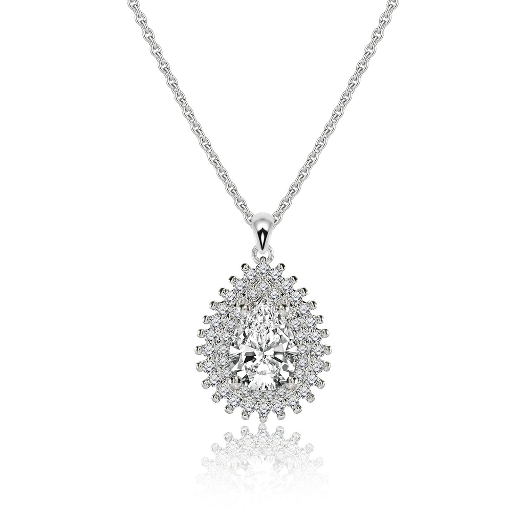 1.5 Carat Double Halo Pear Shaped Pendant Necklace - Classic Everyday Jewelry - Gift for Her