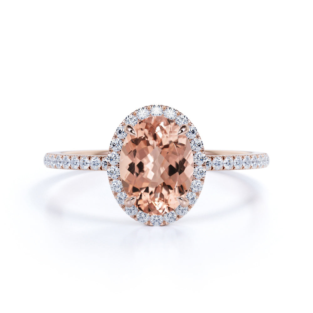 1.5 ct Oval Real Morganite Halo Engagement Ring