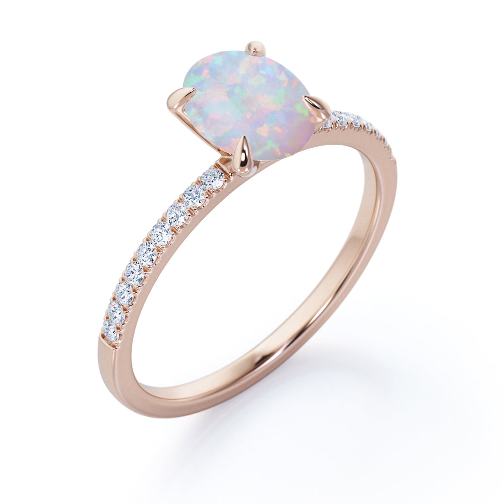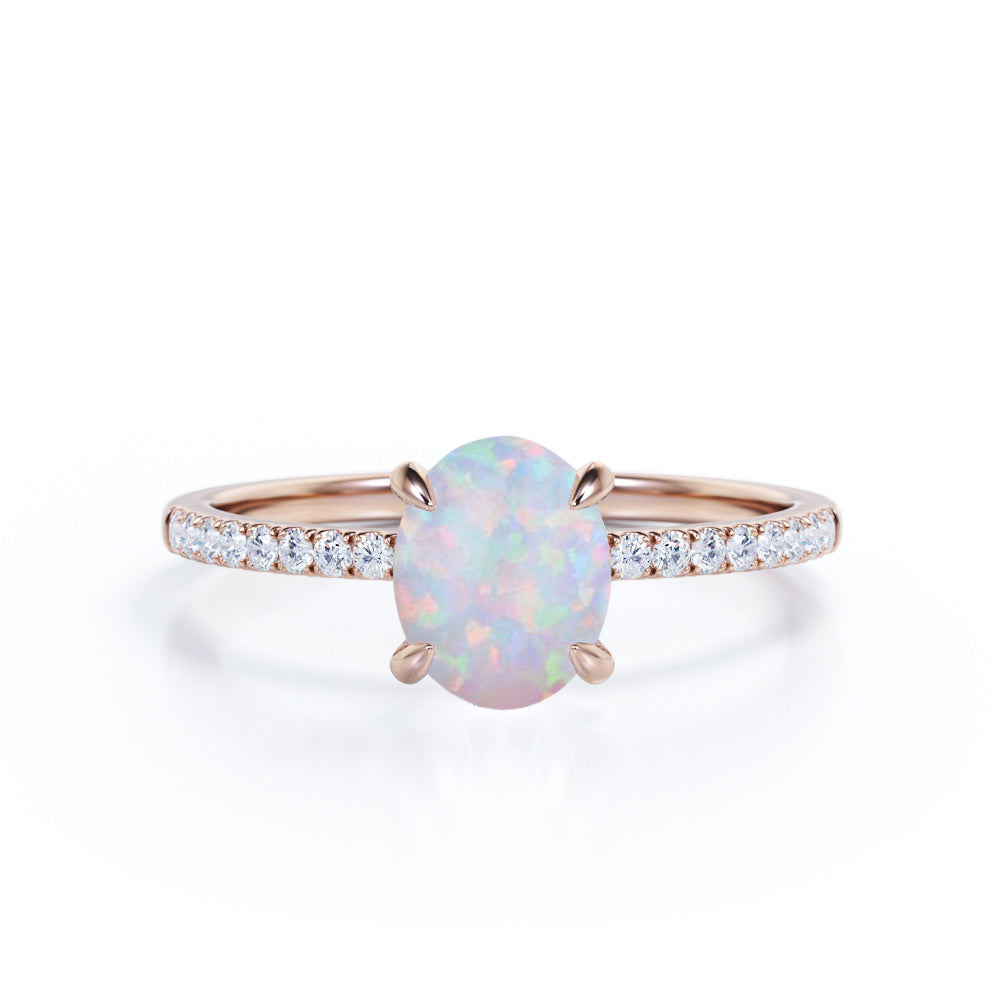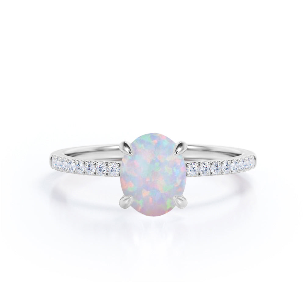 Solitaire 1.5 Ct Oval Cut Lab Created Opal Engagement Ring