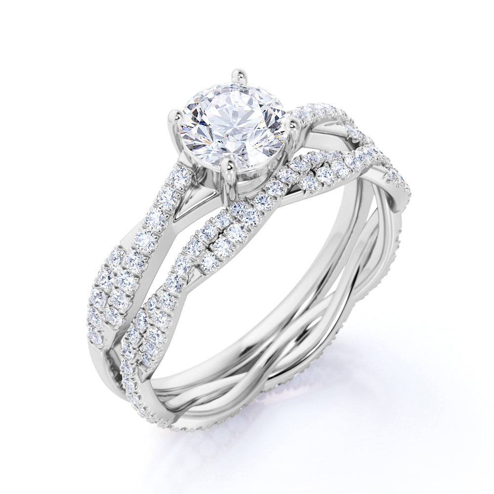 Infinity 1.5 Carat Round Cut Moissanite Wedding Ring Set