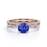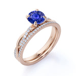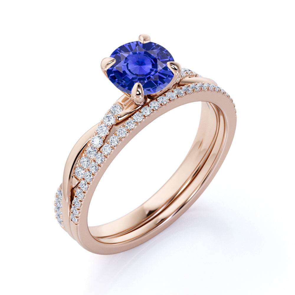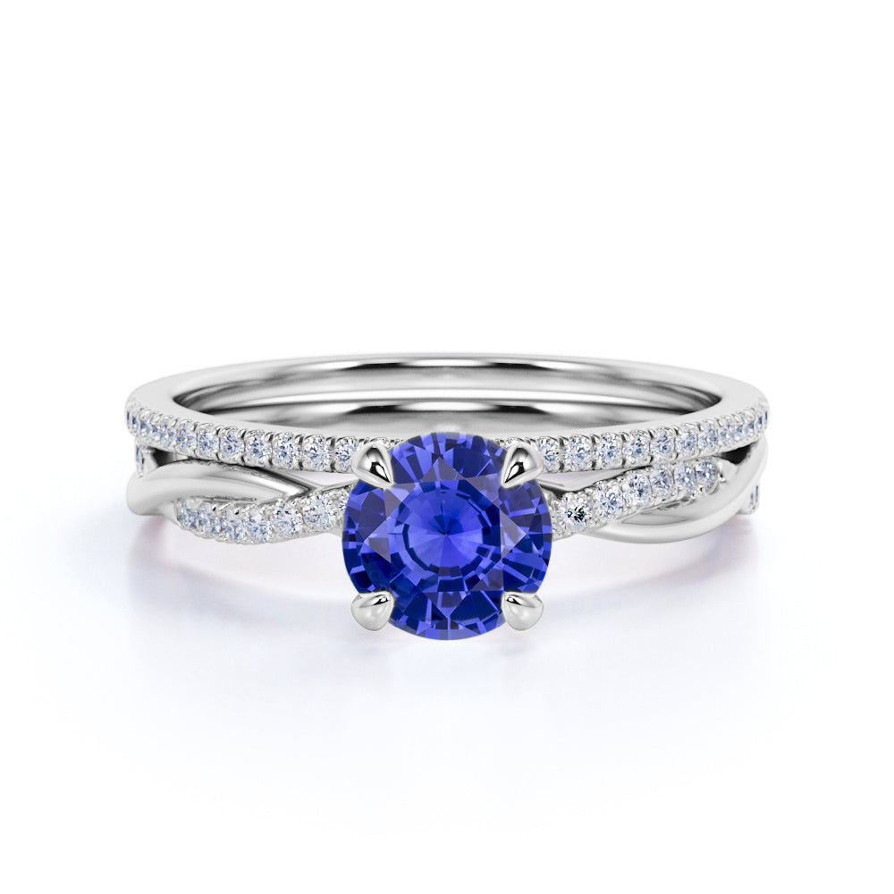 1.5 Carat Round Cut Sapphire and Diamond Bridal Ring Set in 10k White Gold Splendid Ring