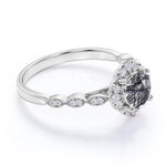 Vintage 1.5 ct Round Black Rutilated Quartz Engagement Ring