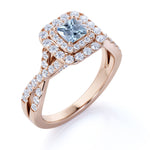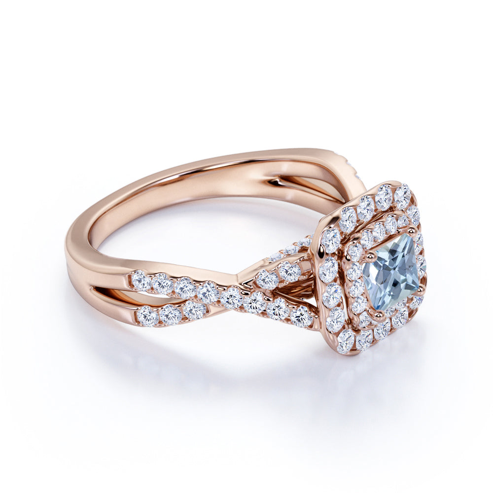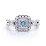 Three Stone 1.50 ct Princess Aquamarine Halo Engagement Ring