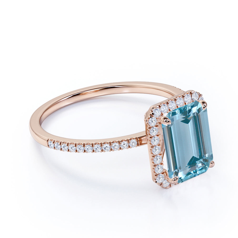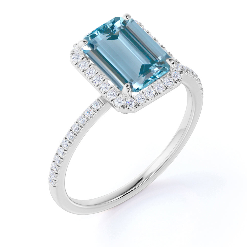 1.50 ct Emerald Cut Aquamarine Halo Wedding Ring