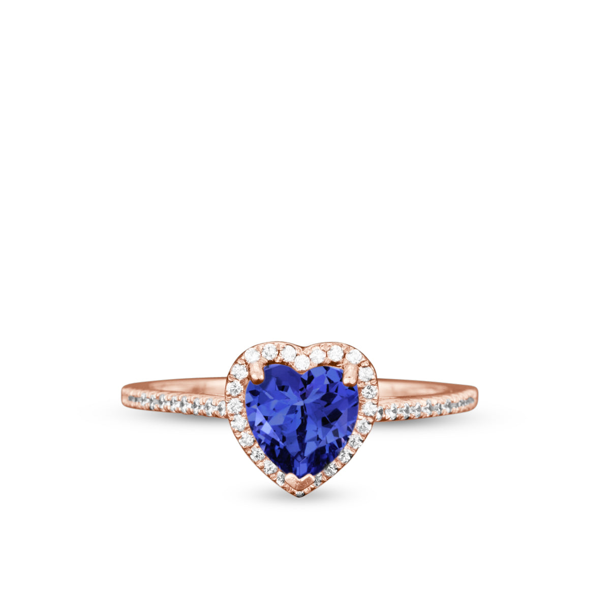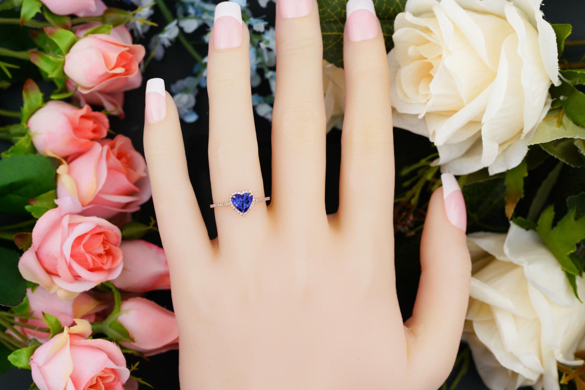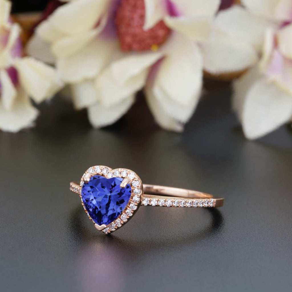 1.50 Carat Heart Shaped Tanzanite Engagement Ring in 18k Rose Gold over Silver