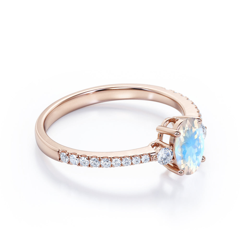 1.50 Carat Oval Moonstone Halo Engagement Ring in Rose Gold - Rainbow Moonstone Ring