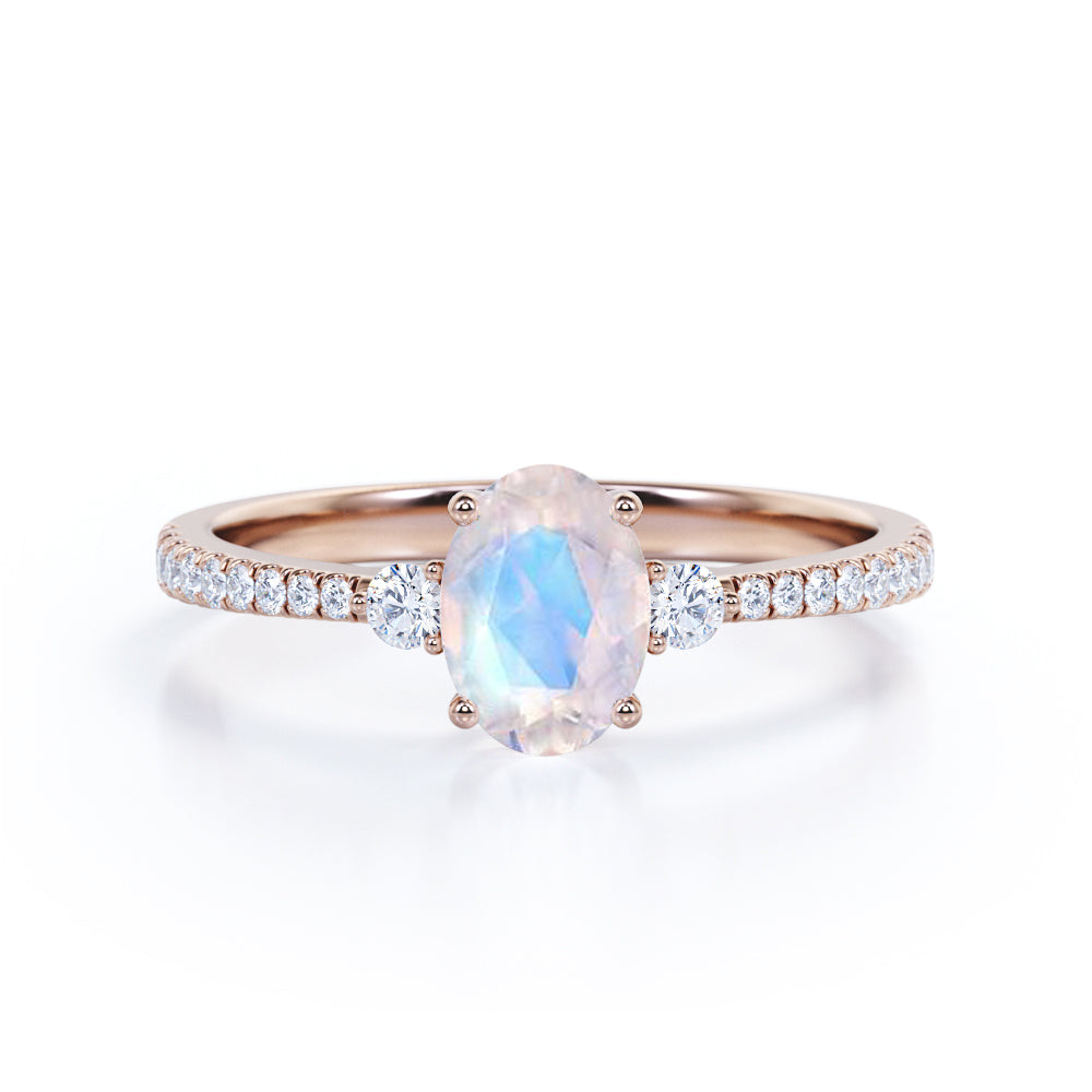 1.50 Carat Oval Moonstone Halo Engagement Ring in Rose Gold - Rainbow Moonstone Ring