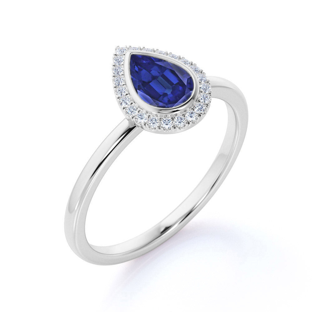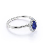 Minimalist 1.20 Carat Pear cut Lab-Created Sapphire and Diamond Halo Engagement Ring in White Gold