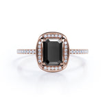 1.50 Carat Emerald cut Lab Black Diamond Bezel Set Engagement Ring for Women in Rose Gold