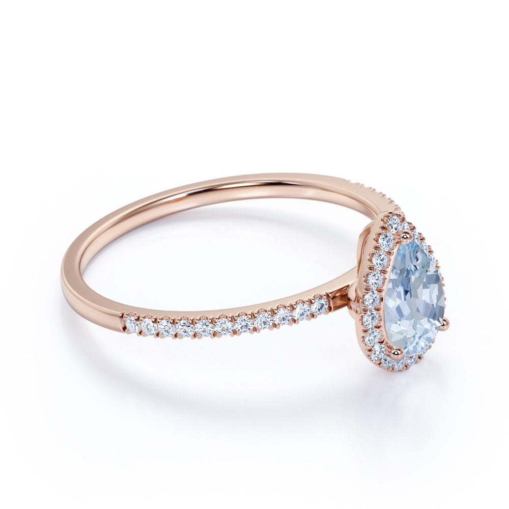 1.50 ct Teardrop Aquamarine Halo Engagement Ring